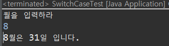 package ch16; import java.util.Scanner; public class SwitchCaseTest { public static void main(String[] args) { //한달이 몇일인지 알려주는 프로그램 구현 Scanner scanner = new Scanner(System.in); //숫자를 입력받기 위해 스캐너 사용 System.out.println("월을 입력하라"); int month = scanner.nextInt(); //월을 정수로 입력 받기 int day; //몇일인지를 표현하기 위해 사용한 변수 switch(month) { case 1: case 3: case 5: case 7: case 8: case 10: case 12: //같은 일수 끼리 한줄에 작성..
